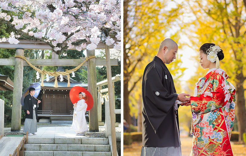 平日 ¥138,000(税込) 〜 | [洋装ロケ・和装ロケ共通内容] プラン内新郎新婦衣装各1点 ロケーション撮影料 ヘアメイク着付け(かつら代別) インナーレンタル・和装着付小物・綿花ガーゼ 撮影データ120カット(未修整) 衣装クリーニング代 安心プラス |