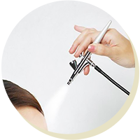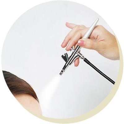 ハリウッド生まれのエアブラシを使ったメイク技法です。ファンデーションを微粒子のミストで吹き付けるので、毛穴がしっかり埋まります。高画質放送4K対応として、多くの俳優・アナウンサーが使用しています。