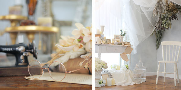 中には本物のアンティーク家具や小物が置かれ、不思議な懐かしさを感じる空間となっています。