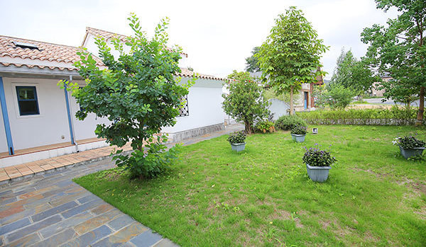 水戸市千波町の旧6号に面したフランス風の洋館です。裏手には緑がいっぱいの庭があり、四季の草花を楽しめます。庭の入り口に立つ大きなモミの木は、冬にはクリスマスツリーに変わります。