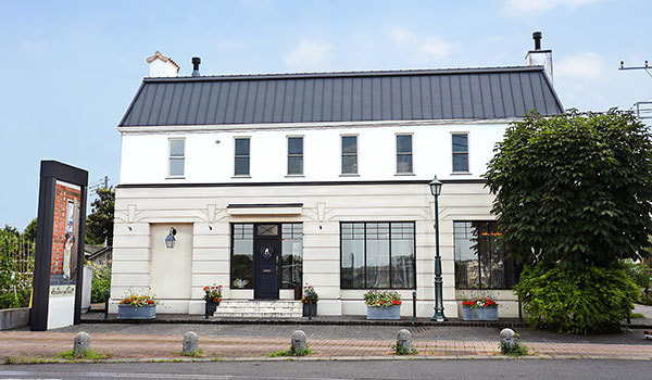 県道50号水戸神栖線沿いに面した洋館風の建物です。当店と蕎麦店「春木屋」さんの間の道をお入りください