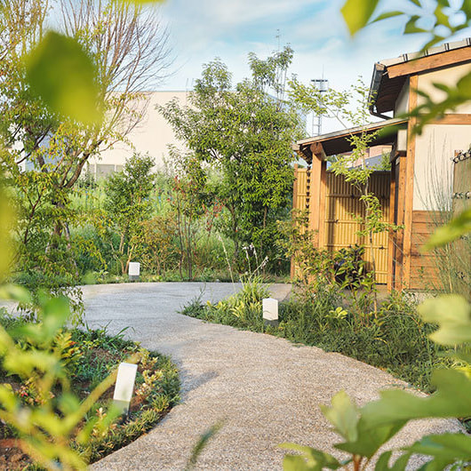 写真集ライブラリーのあるカフェスペースと、広々としたお庭があり、ゆったりとお過ごしいただけます。