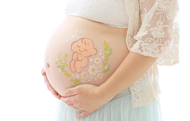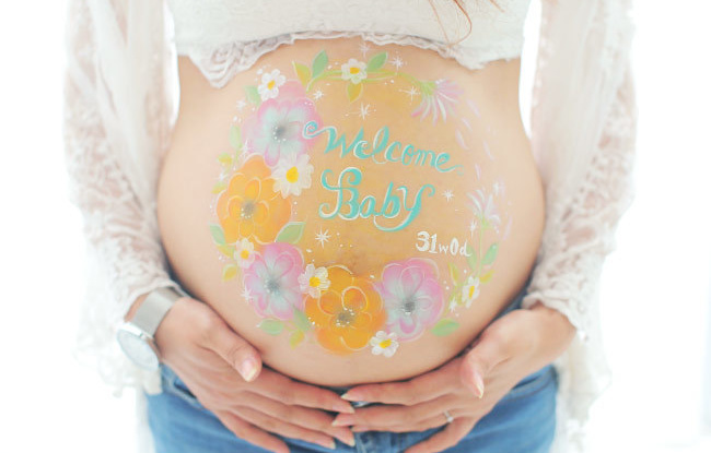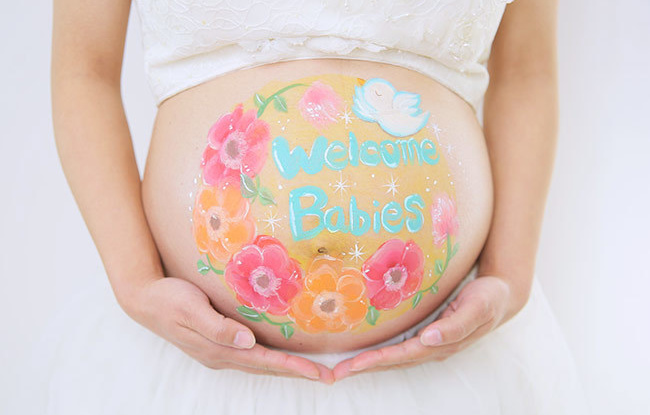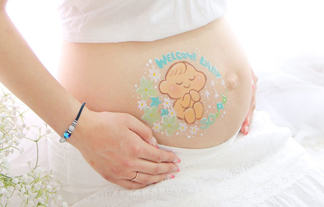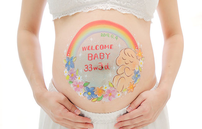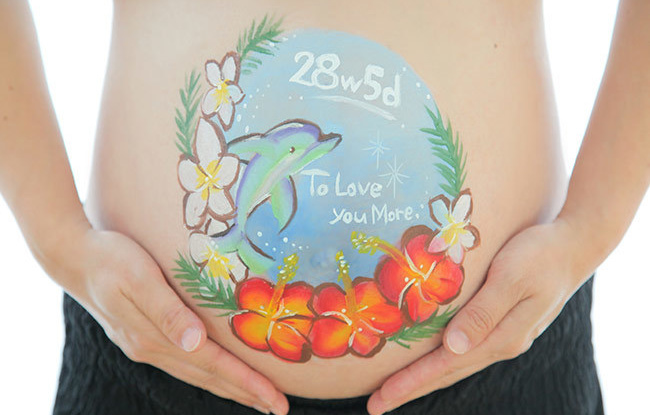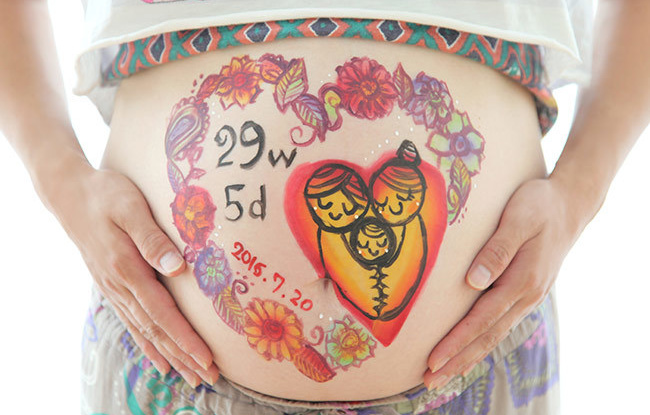 「ベリーペイント」は、赤ちゃんがおなかにいるときのまん丸くふくらんだ「Belly(おなか)」に、直接絵を描くこと。