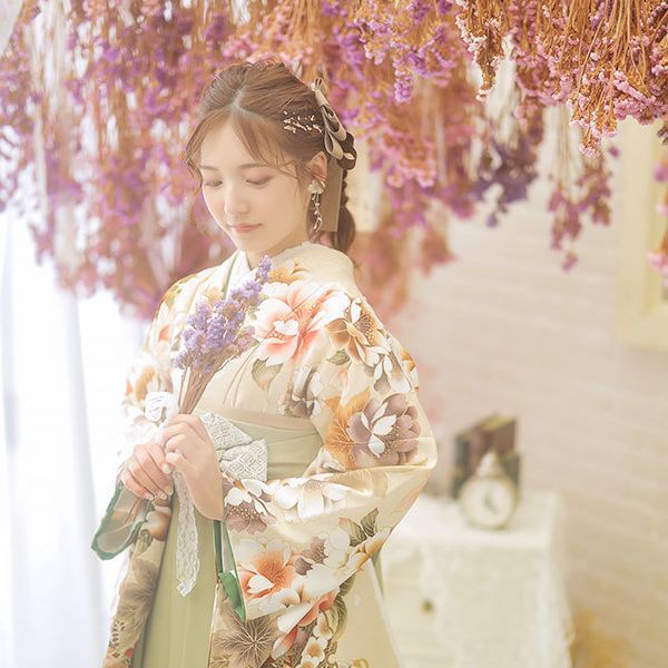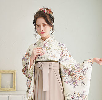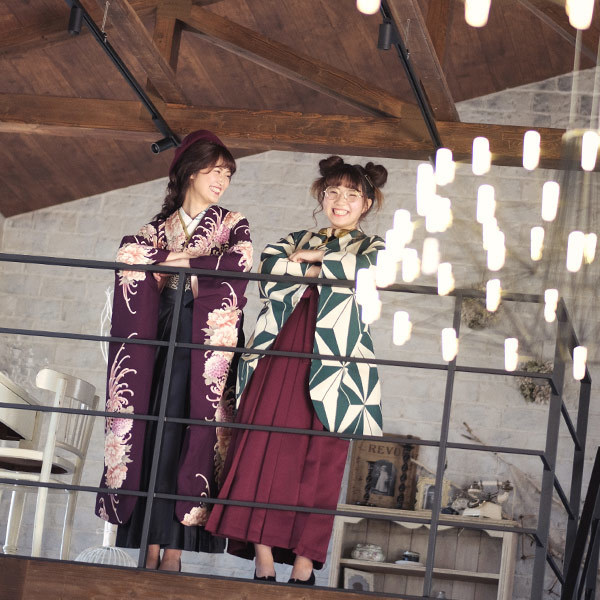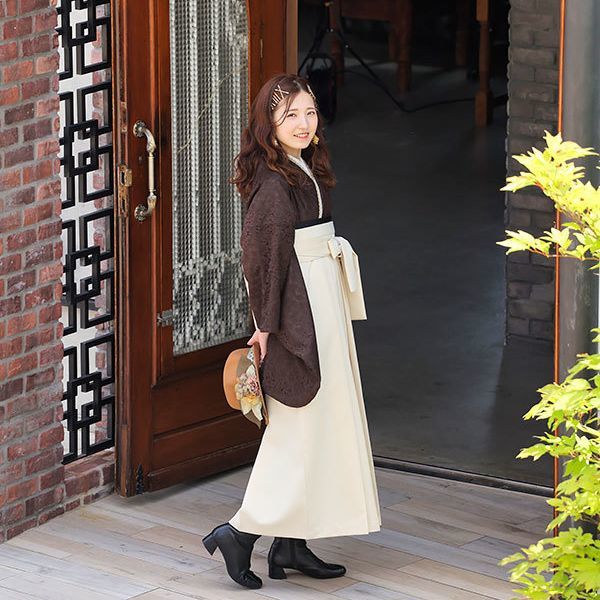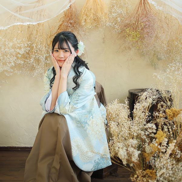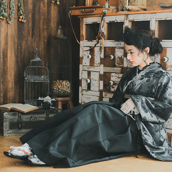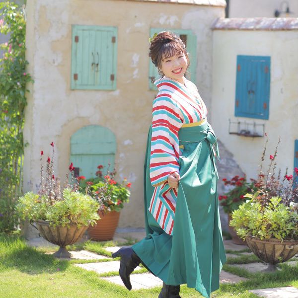 同じ着物でも、袴の色やデザインでイメージががらりと変わります。自分らしいコーディネートを見つけてください。