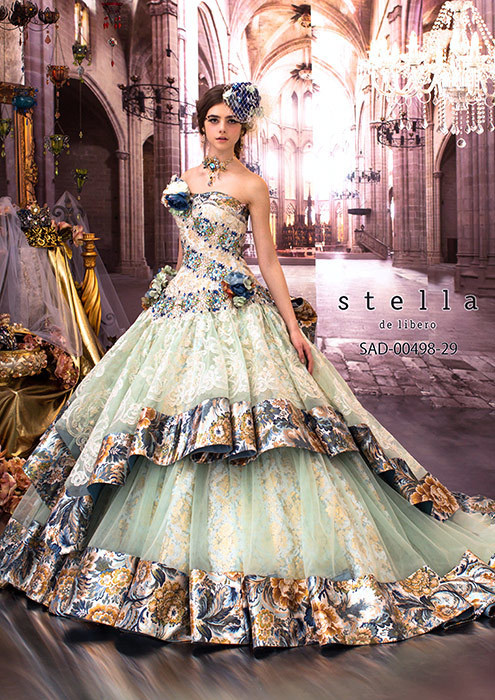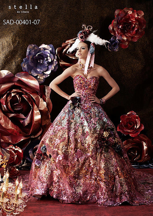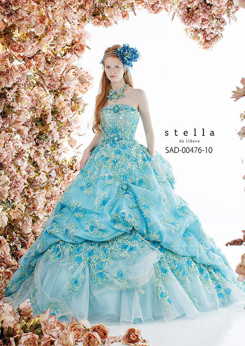 ボリューミーなシルエットやデコラティブな装飾性など、トレンドを意識したデザインの中にも、クラシカルなビージングなどステラらしいヨーロピアンエレガンスが表現されています。