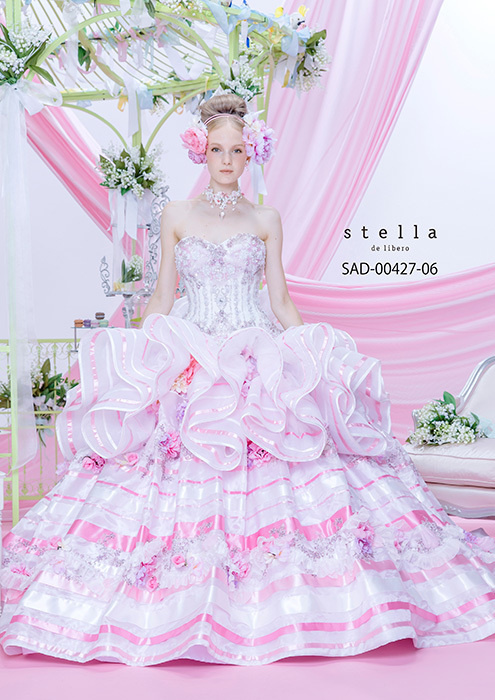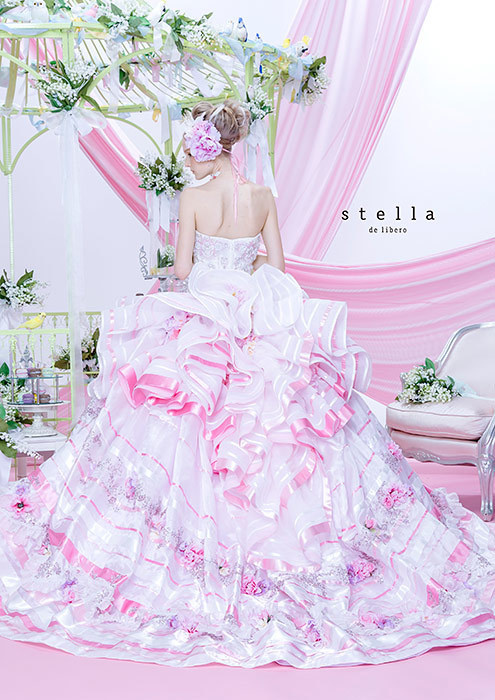 相反するテイストを一つのドレスに注ぎ込んだ独創的なデザインは、ステラだけのもの。