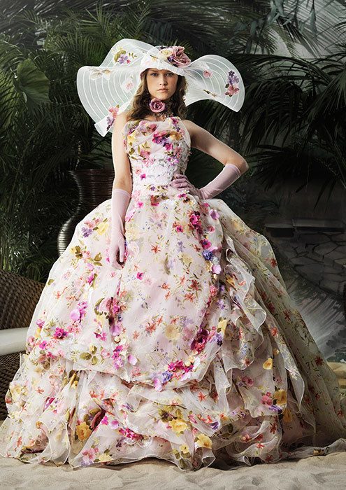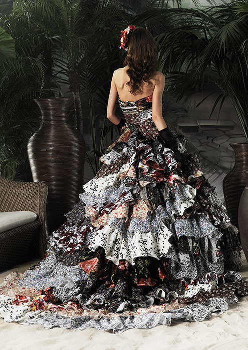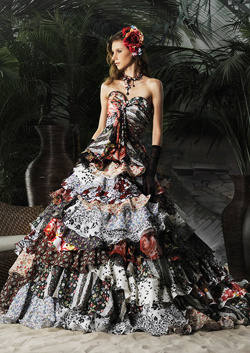 あらゆる時代のファッション、クチュール、民族衣装を融合させる斬新なアイデアから生まれたドレスです。