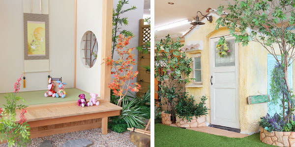 広い店内のあちこちに撮影用セットがあり、いろいろなシチュエーションで撮影できます。天候や暑さ寒さに左右されることなく、快適に撮影ができるのが魅力のスタジオです。